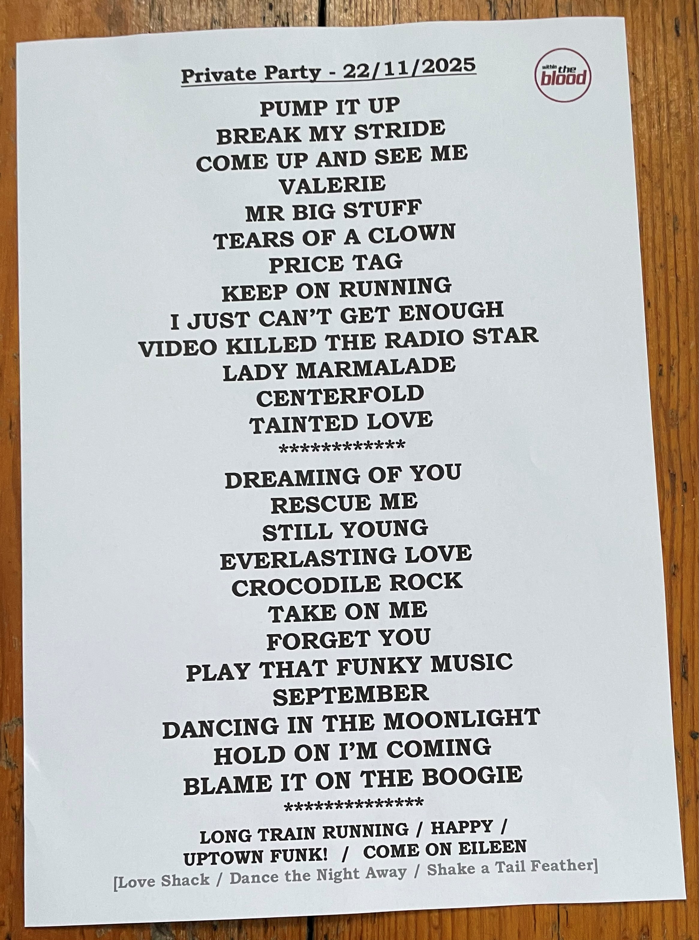 This is an example set list.